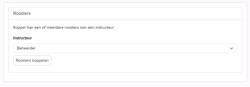 Voor gebruikers die geen beheerder rechten hebben is het mogelijk om een rooster aan een gebruiker te koppelen zonder de gebruikers te kunnen bewerken. Selecteer de instructeur en koppel het juiste rooster.