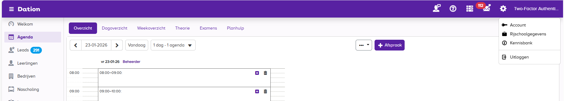 - Bij het inloggen gebruik je je e-mailadres en wachtwoord. Daarna zie je het volgende scherm.