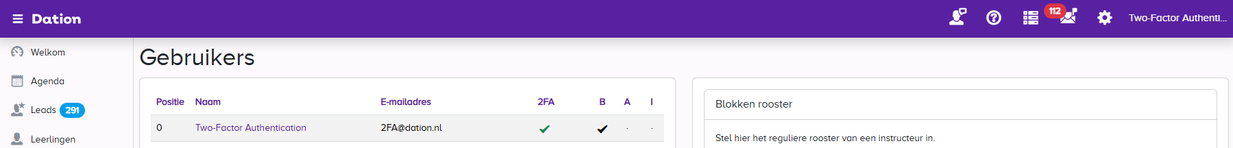 - Als beheerder kun je zien welke gebruikers in je omgeving allemaal 2FA hebben ingesteld. Je kunt dit niet voor iemand anders doen, maar je kunt wel controleren welke gebruikers het hebben ingesteld. Zie kolom 2FA: