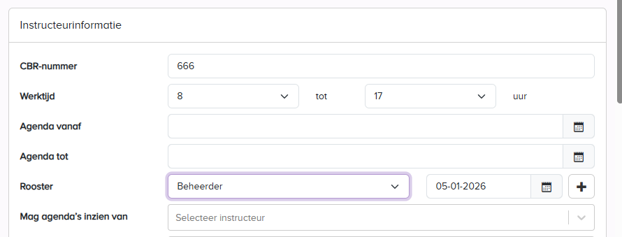 Het is mogelijk om één of meerdere rooster(s) te koppelen aan een instructeur (denk aan een rooster dat in de toekomst start)